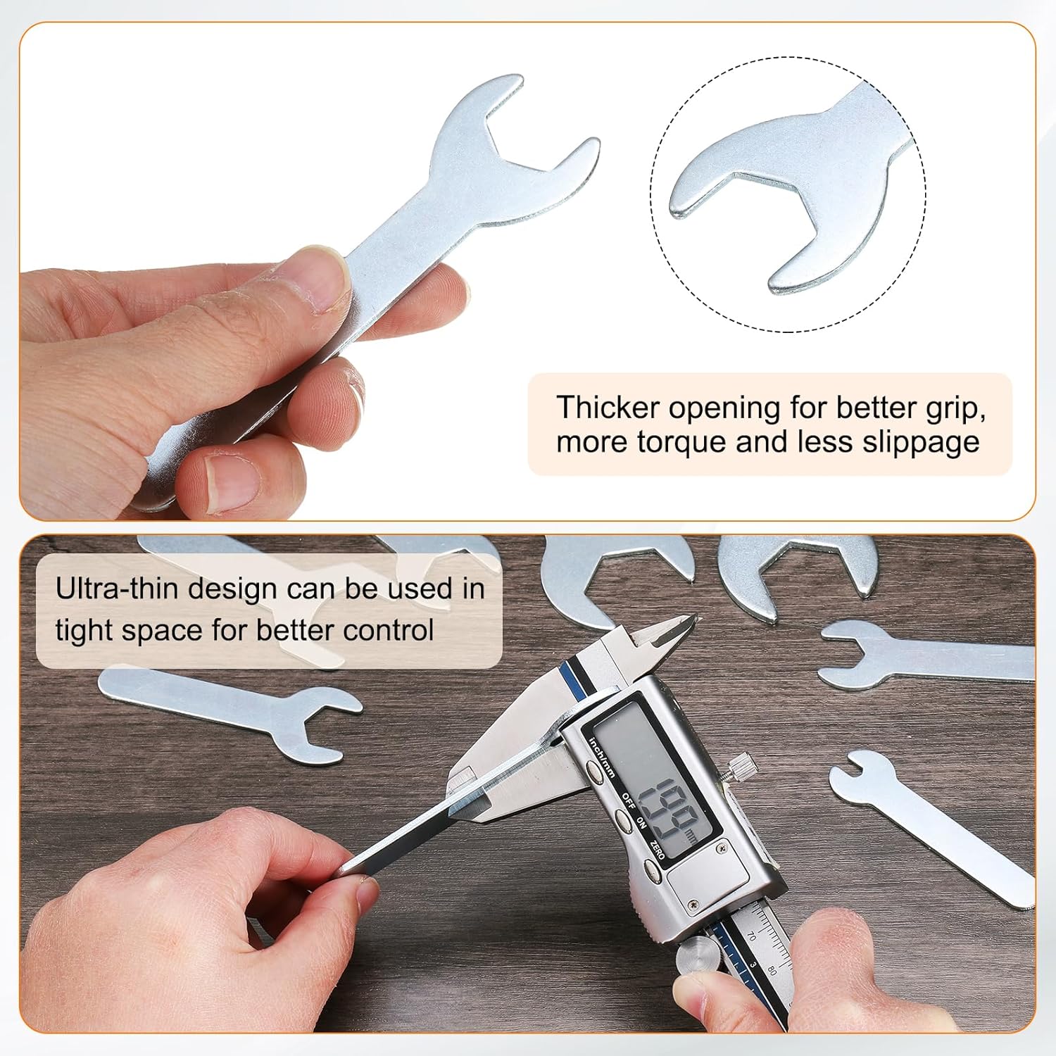 - Standard Size - The standard open-end wrench's increased thickness ensures a more secure grip on nuts and bolts, resulting in better torque transfer and less slippage. The precision socket allows for quick and easy adjustment of the wrench size to accommodate different bolt sizes. The ultra-thin handle is comfortable to hold and improves work efficiency.