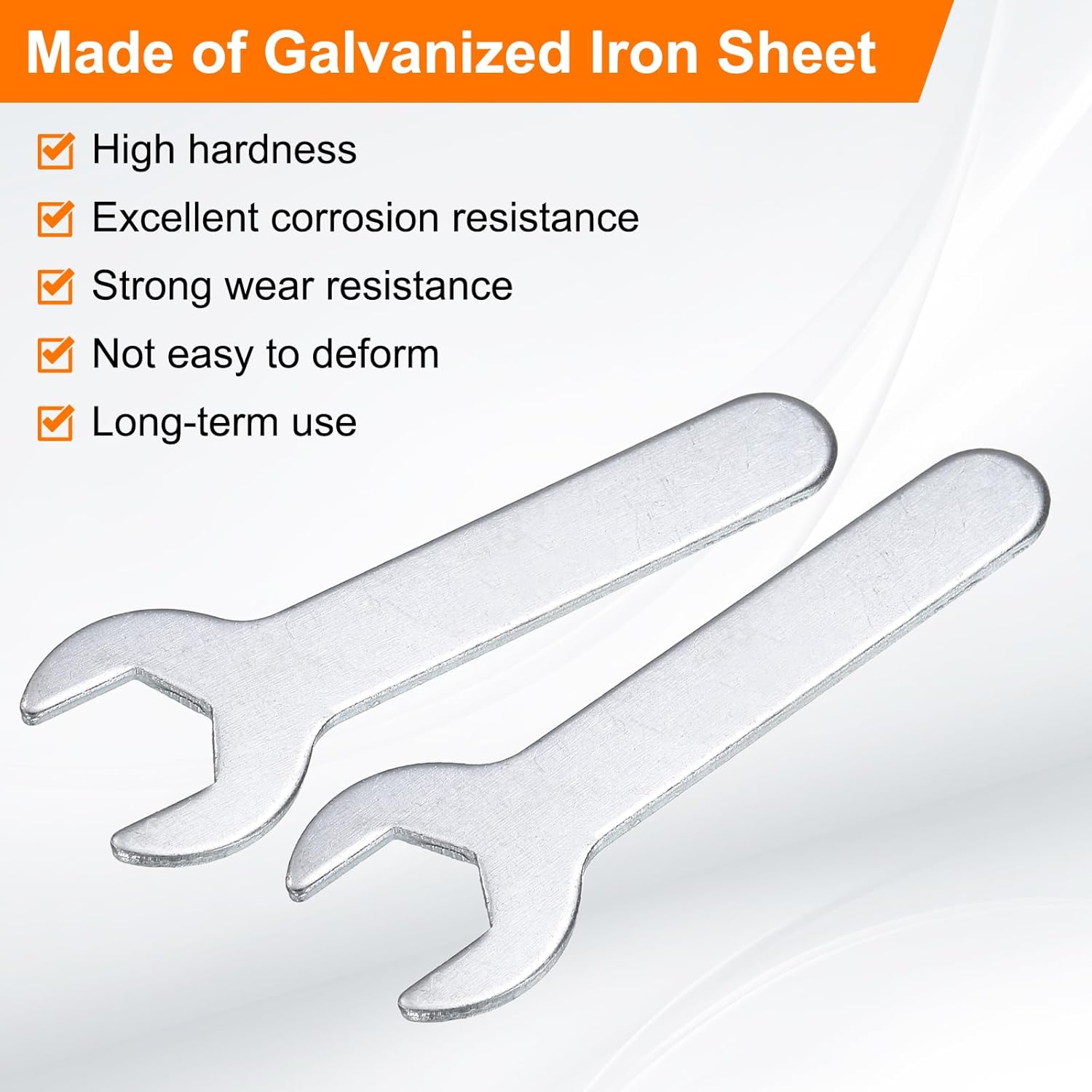 - Long Lasting - Our single open-end wrench is made of an iron plate, which has high hardness and excellent corrosion resistance. The surface galvanizing improves its wear resistance, keeps its surface smooth and reduces wear, is not easy to deform, and can be used for a long time.