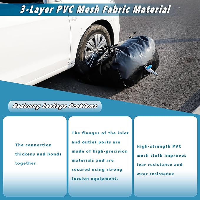 - 【Multiple uses】 Suitable for camping, outdoors, gardens and other places without fixed water storage facilities. It can be widely used in non-potable water storage and recycling rainwater collectors, RV water storage, fire protection and agricultural use, emergency water supply, garden irrigation, bridge preloading, etc