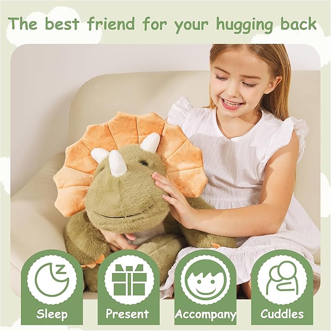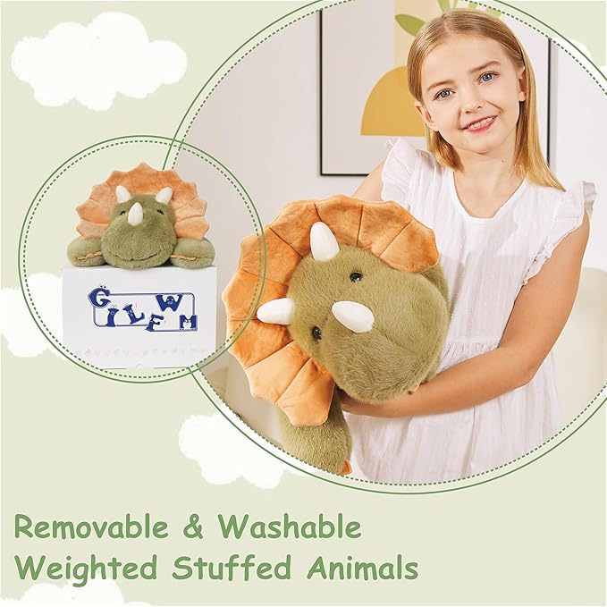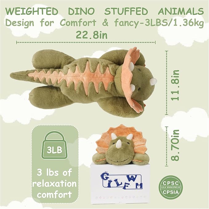 - Safety First: Designed with utmost care, this weighted stuffed dino toy is made from safe materials with safety eyes, holding a CPC certificate. Rest assured, it's a reliable and trustworthy companion for all ages.