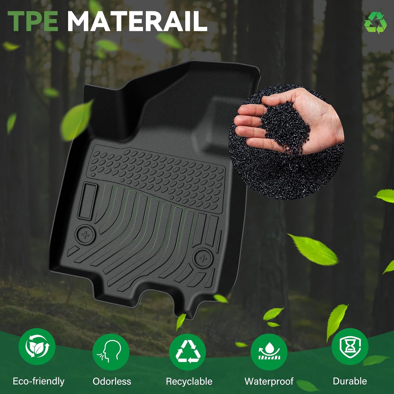 - High-Quality TPE Materials: Our floor and cargo mats are crafted from high-quality TPE rubber material, free of latex and PVC. They offer outstanding durability and comfort while ensuring a safe and non-toxic interior environment for all passengers. The mat's composition makes it an excellent choice for environmentally conscious consumers who value the well-being of their families and pets during car trips