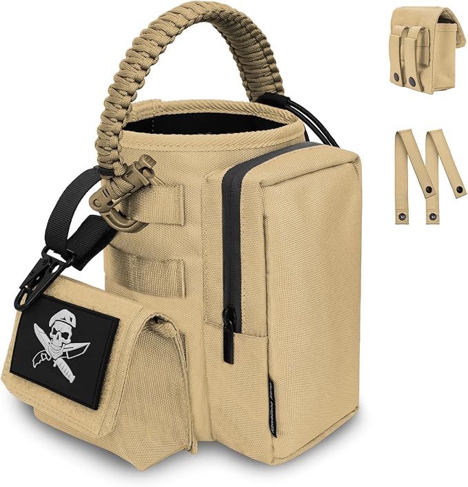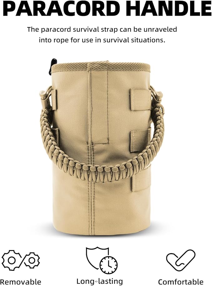 - 1000D Upgraded Material - It utilizes 1000D nylon fabric renowned for its exceptional wear resistance, boasting a tearing strength of up to 40Kg, heat insulation, and durability. Available in three sizes: 32 oz water bottle carrier, 64 oz water bottle carrier, and 128 oz water bottle carrier