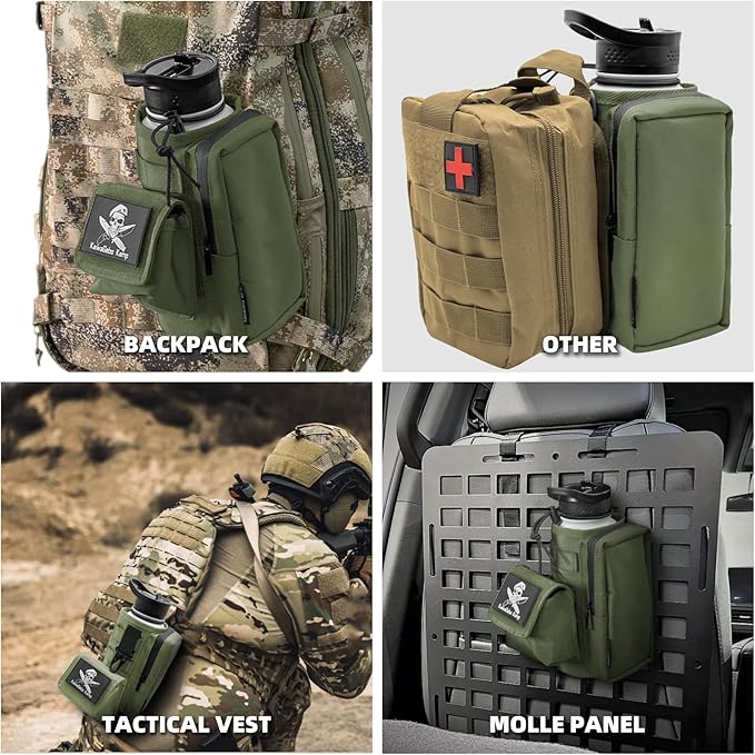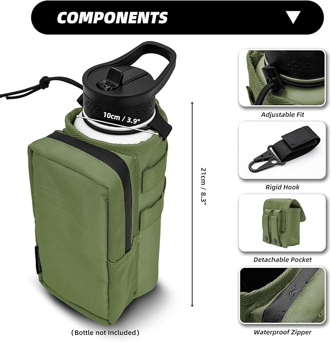 Water Bottle Holder Bag with Molle Strap - Water Bottle Carrier Pouch for Walking, Gym, Camping, Fishing, Hunting 32oz, 64oz, 128oz One Gallon Tactical Carrier Holder