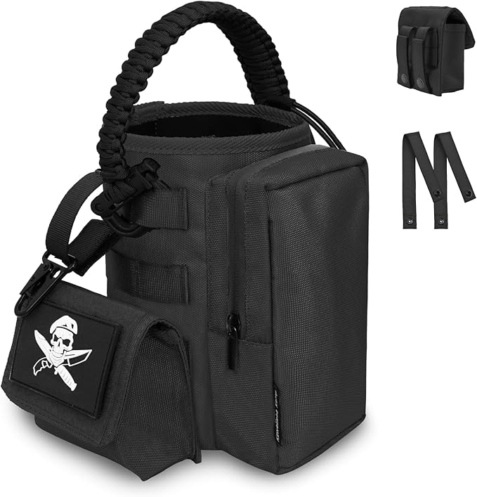 • Multiple Carrying Option:The tactical water bottle holder is equipped with two MOLLE back straps featuring metal snaps, allowing it to be securely attached to MOLLE-compatible gear such as backpacks or battle belts. It also includes a sturdy hook, ideal for holding keys or other small tools