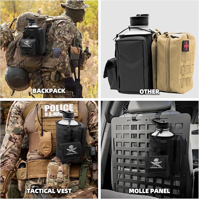 Water Bottle Holder Bag with Molle Strap - Water Bottle Carrier Pouch for Walking, Gym, Camping, Fishing, Hunting 32oz, 64oz, 128oz One Gallon Tactical Carrier Holder