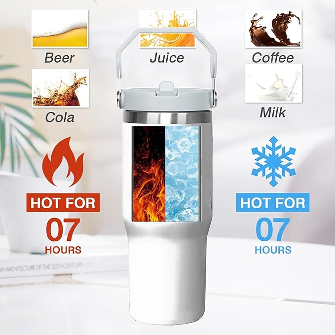 - Coffee Tumblers Humanized Design: The 30 oz tumbler with straw body has smooth lines and a comfortable grip, and is equipped with a convenient handle or straw. The cup lid is well designed and easy to open and close, making it convenient and smooth to use. The wide mouth design of the travel coffee mug with handle makes it easy to drink, and ice cubes can be easily placed inside.