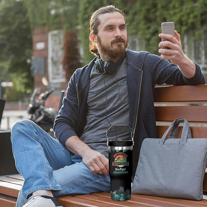 30 Oz Papasaurus Tumbler with Handle and Straw, Daddy Cup Insulated Best Daddy Mug, Double Wall Stainless Steel Dadasaurus Cup, 30 Oz Leak Proof Daddy Mug and Travel Mugs for Dad Gifts