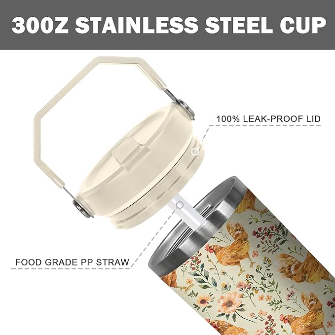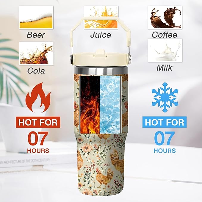 - Tumbler Cup Excellent insulation: Our chicken 30 oz tumbler with handle made of high-grade stainless steel and vacuum insulation technology, it effectively maintains the temperature of drinks. Whether it is boiling hot coffee or cool ice water, it can maintain the original temperature for a long time, allowing you to enjoy the ideal drink taste at any time.