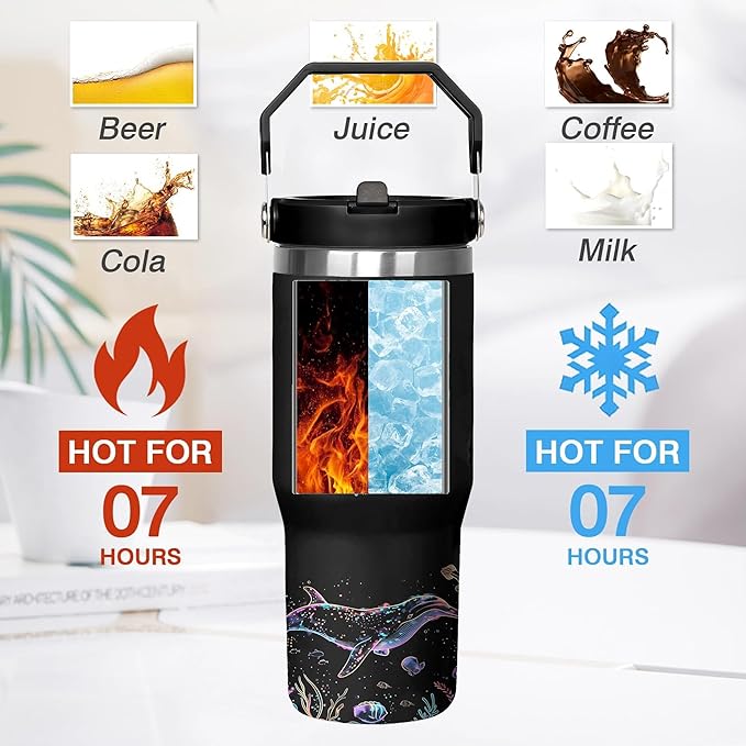 - 30 Oz Tumbler Straw Large Capacity: This 30oz stainless steel insulated tumbler cup is designed to provide you with an ample supply of beverages throughout the day. Whether it's hot coffee or cold water, its excellent insulation keeps the temperature just right. Whether you are busy working in the office or traveling and exploring, you don’t need to replenish water frequently.