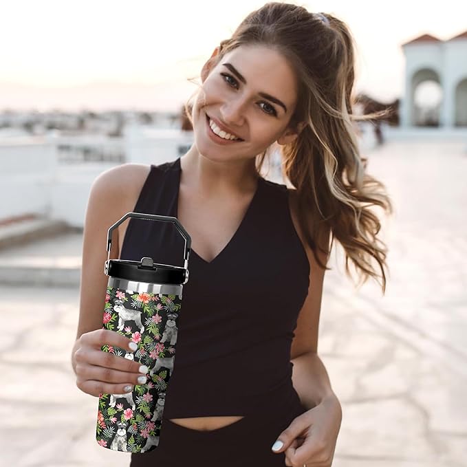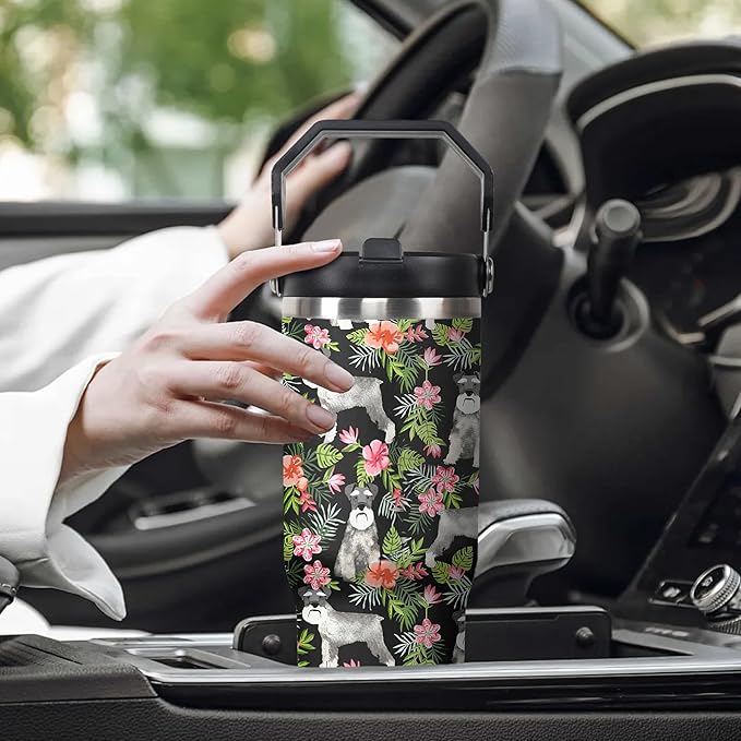 30 Oz Schnauzer Tumbler with Handle and Straw, Dog Mug Insulated Dog Coffee Mug, Double Wall Stainless Steel Schnauzer Coffee Mug, Dog Dad Mug or Dog Mom Tumbler Schnauzer Gifts for Women and Men