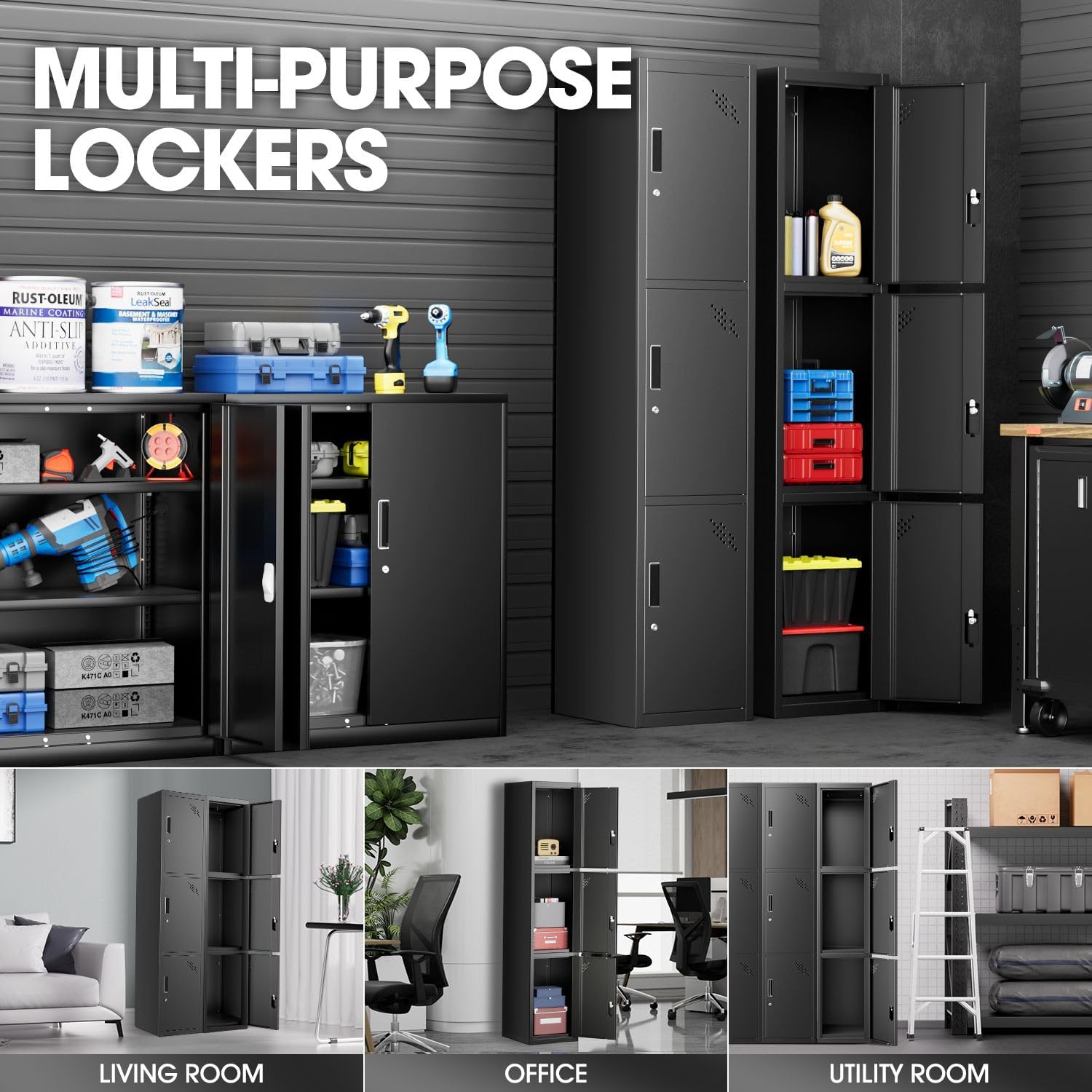 DNA MOTORING Metal Storage Cabinet for Employees with Keys, 71" Employees Metal Locker with 3 Doors, Tall Storage Lockers for Garage,Office,Home,Gym, Black, TOOLS-00789-BK-BK