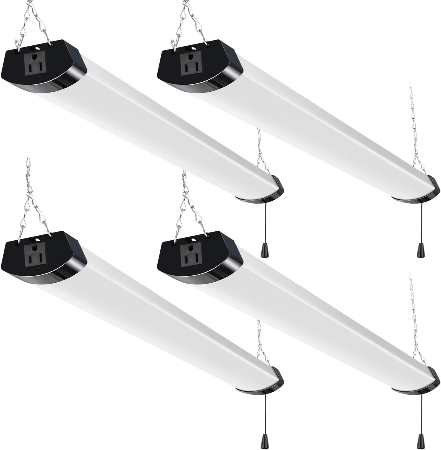 hykolity 4FT 70W LED Shop Light Linkable, 8000lm(300w Equivalent), 5000K Utility Shop Lights for Garages, Workshops, Basements, Hanging or FlushMount, with Power Cord and Pull Chain, ETL, 4 Pack