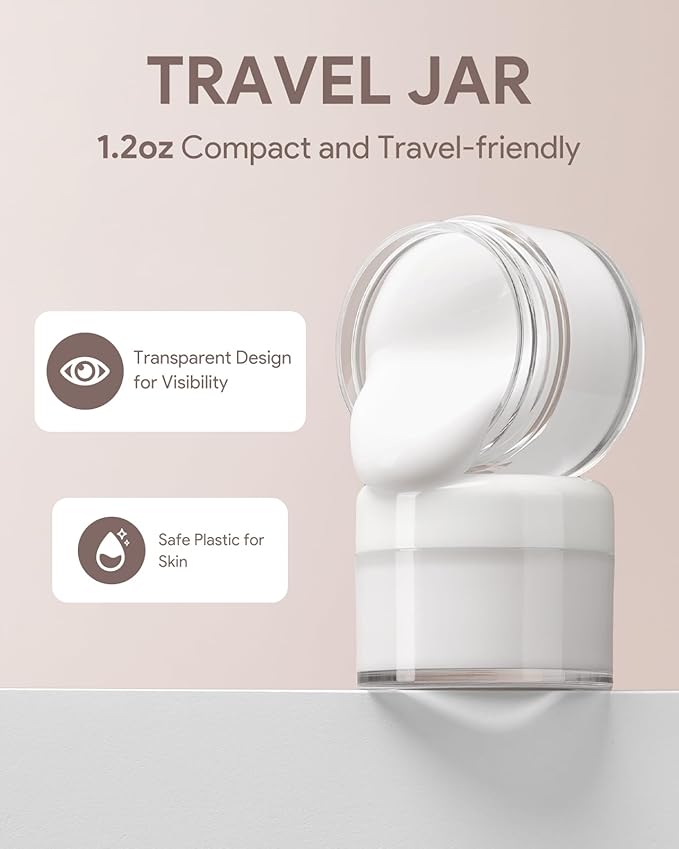 - All-in-One Travel Storage Solution: Our set comes with travel-size products, including 1 toiletry bag, 4 travel bottles(2.2oz) and 2 travel jars(1.2oz), making it a one-stop-shop for your travels