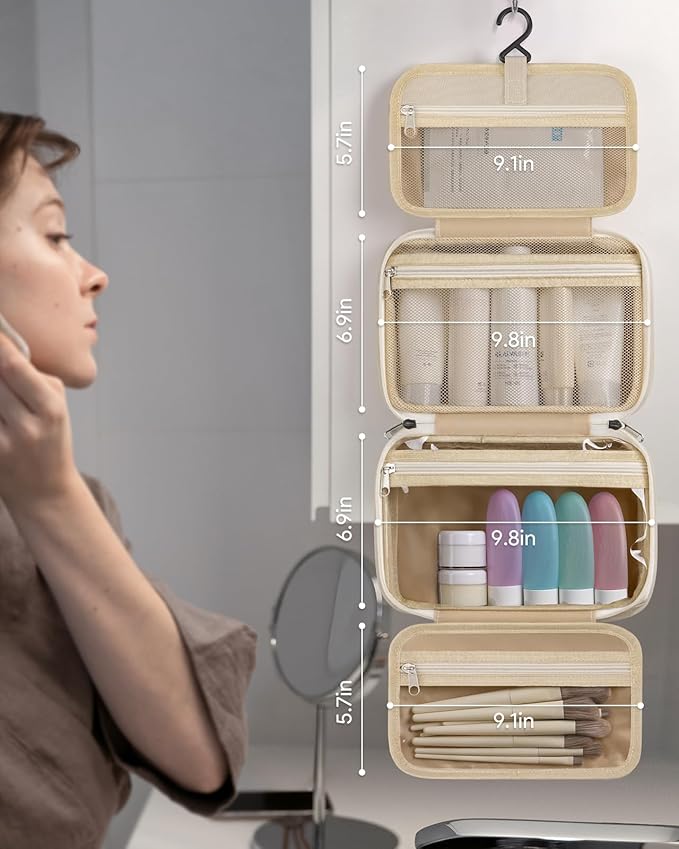 - Small Size, Large Capacity: This space-saving hanging toiletry bag holds all your travel essentials-makeup, travel-size shampoo, conditioner, and skin care products