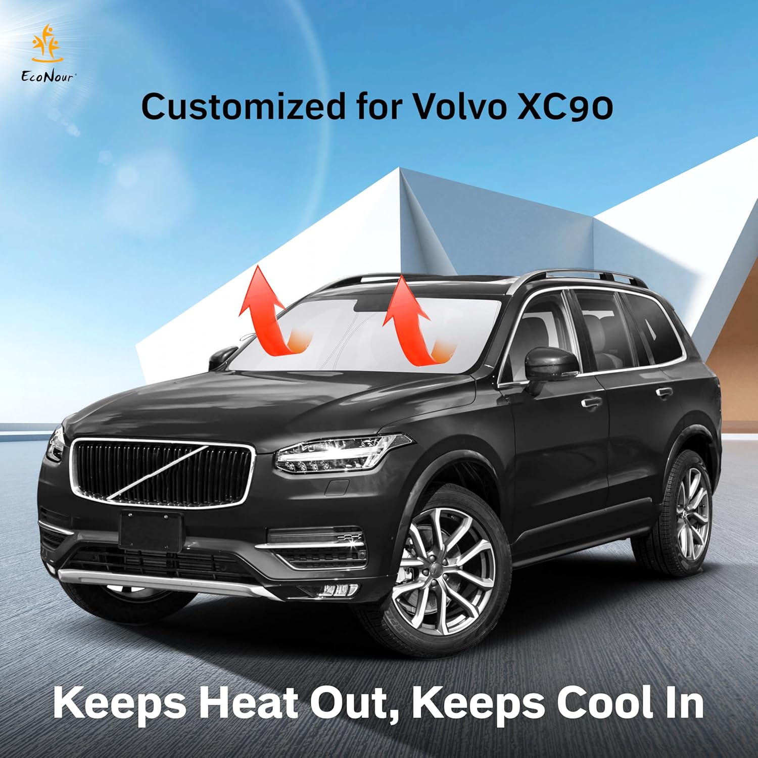 EcoNour Windshield Sun Shade Compatible for Volvo XC90 (2016–2025) | Front Window Shade for Luxury SUV | 4-Layer, 240T Sunshade Accessories | UV & Heat Blocker for XC90 Windshield