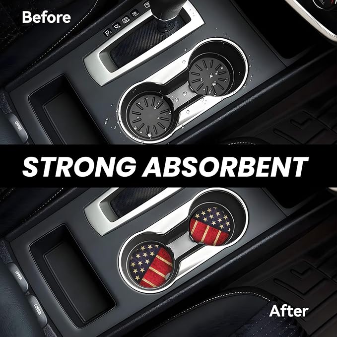 - One of the key features of these coasters is their exceptional absorbency. Crafted with advanced materials, they effectively soak up spills and condensation, keeping your cup holders clean and dry—no more worries about drips or stains in your car!