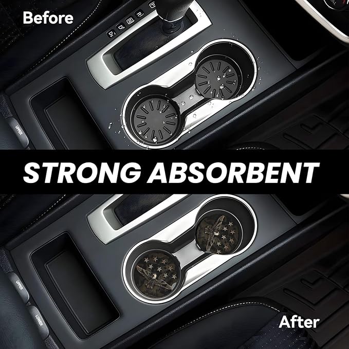 - One of the key features of these coasters is their exceptional absorbency. Crafted with advanced materials, they effectively soak up spills and condensation, keeping your cup holders clean and dry—no more worries about drips or stains in your car!