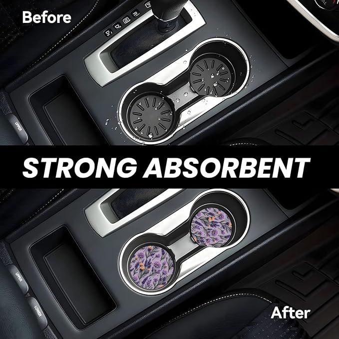 - One of the key features of these coasters is their exceptional absorbency. Crafted with advanced materials, they effectively soak up spills and condensation, keeping your cup holders clean and dry—no more worries about drips or stains in your car!