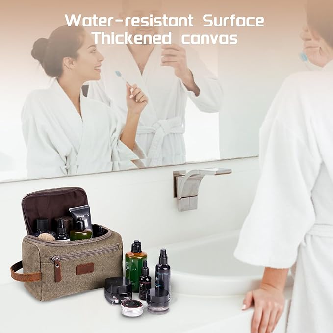 Travel Toiletry Bag for Men, Large Water-resistant Shaving Bag Toiletries Organizer, Canvas Dopp Kit, Multi-functional and Stylish, Bathroom Dopp Kit Shaving, Ideal for Travel, Camping, Gym- Green