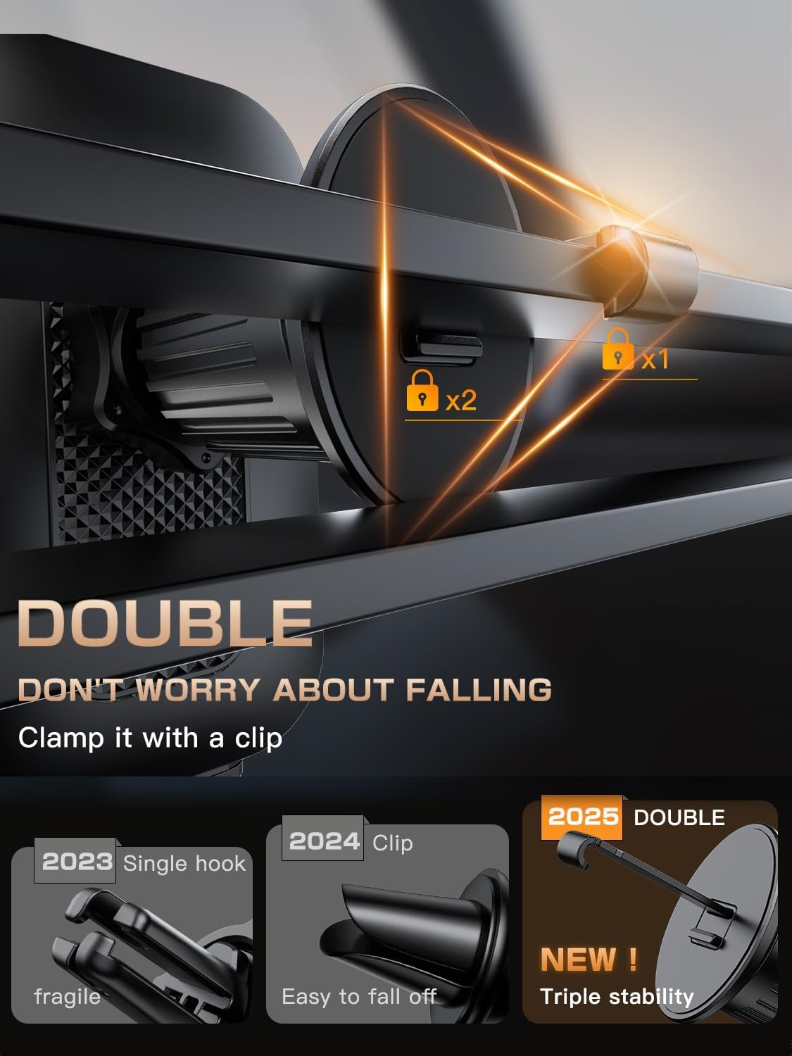- 【3 in 1 Car Phone Holder】3 in 1 cell phone holder with strong suction cup and vent clip, which can be freely placed in all directions without affecting safe driving. The strong suction cup not only has strong suction, but also has good heat resistance. If it is accidentally dirty and the suction power drops, rinse it with water to restore it to its original state. It can be removed at any time and used in other cars or other places.