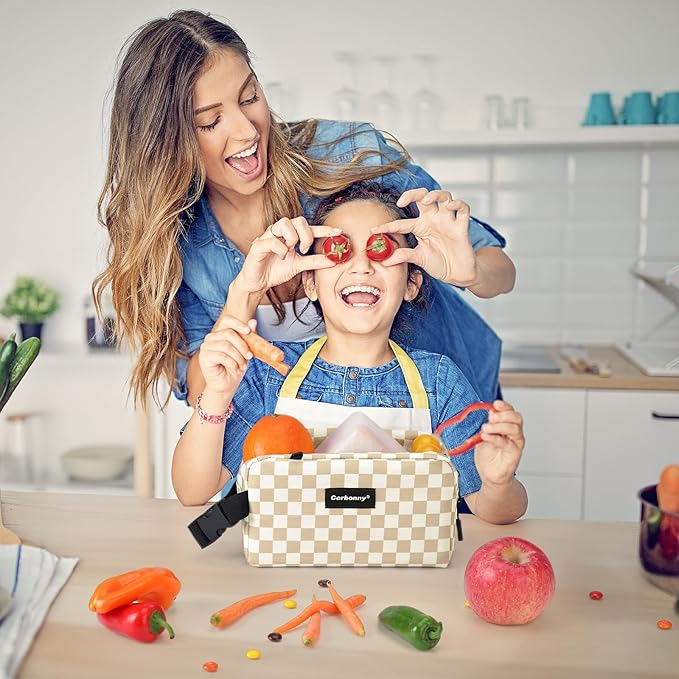 Small Cooler Bag Freezable Lunch Bag for Work School Travel,Small Lunch Bag,insulated snack bag For Adults/Kids,Mini Cooler,Lunch bag small Fit For Yogurt(Khaki Checkerboard)
