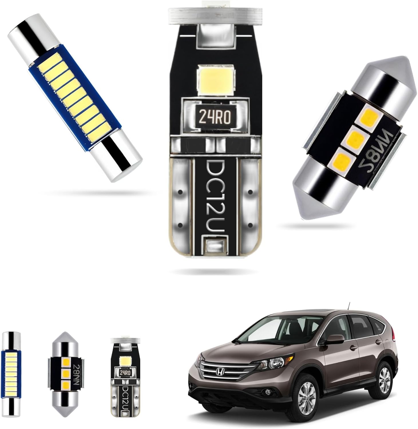 - Super Bright 6000K White LED Bulbs: Illuminate your Honda CRV with high-performance 6000K white LED Interior Car Lights that offer superior brightness, ensuring your cabin is brightly lit without straining your eyes. These lights provide a cool white color temperature that mimics daylight, offering a crisp, clean look. Perfect for reading, searching for items, or simply enhancing the interior aesthetics of your Honda CRV. Reliable, long-lasting, and designed to outshine conventional bulbs.