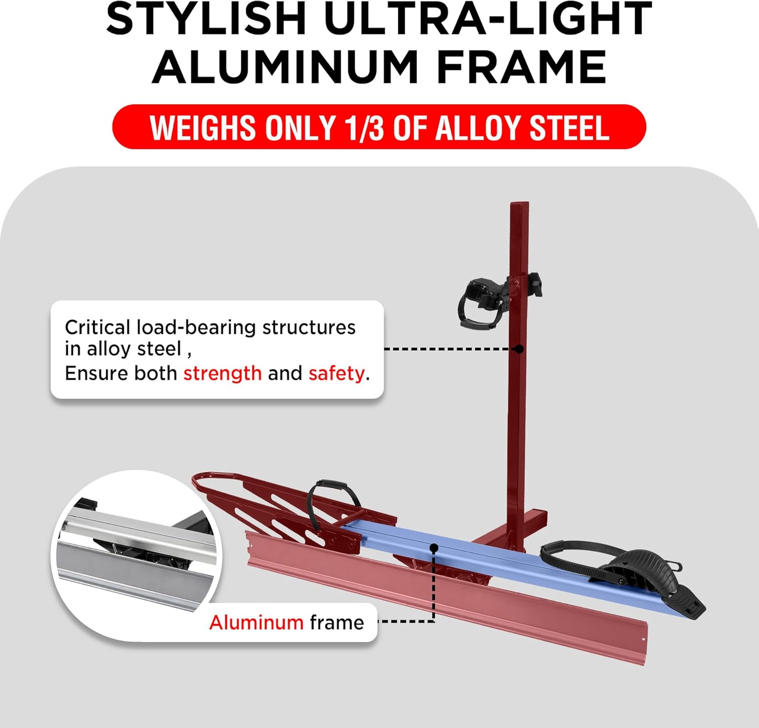 - NO-SCRATCH DESIGN: The rack is elaborately designed to prevent direct contact between the rack's metal surface and your e-bike, avoiding any potential scratch or damage. With ratcheting safety straps, soft padding and rubber covers, your e-bike will be safely tightened onto the rack, facing the slightest wobbles even on the roughest roads.