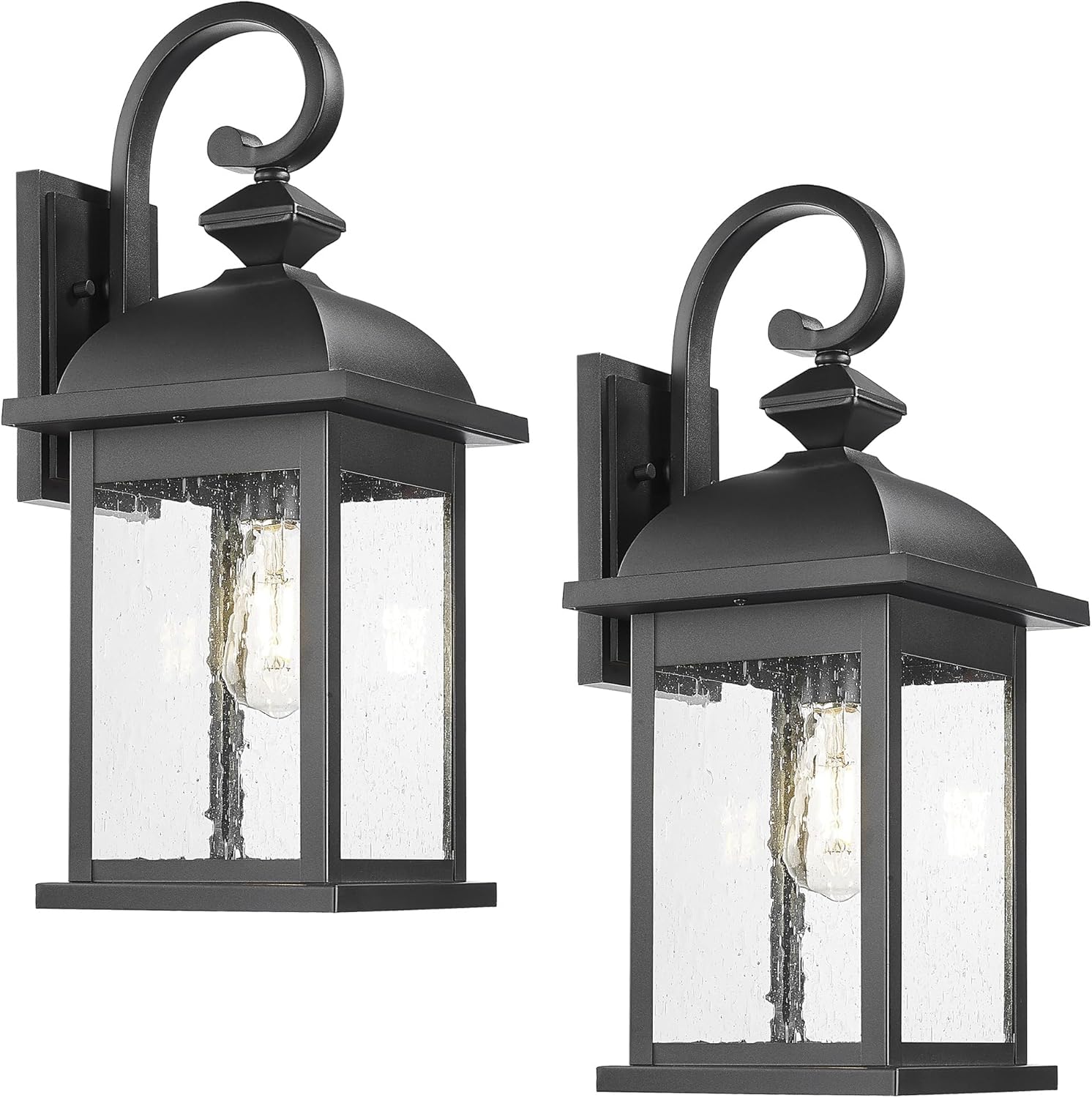 - Weather-Resistant & Long-Lasting (2 Pack): This set of two black outdoor wall lights features a sturdy metal frame with a rust-resistant finish, designed to withstand the elements. The matte black finish and seeded glass bring timeless appeal to your outdoor lighting.