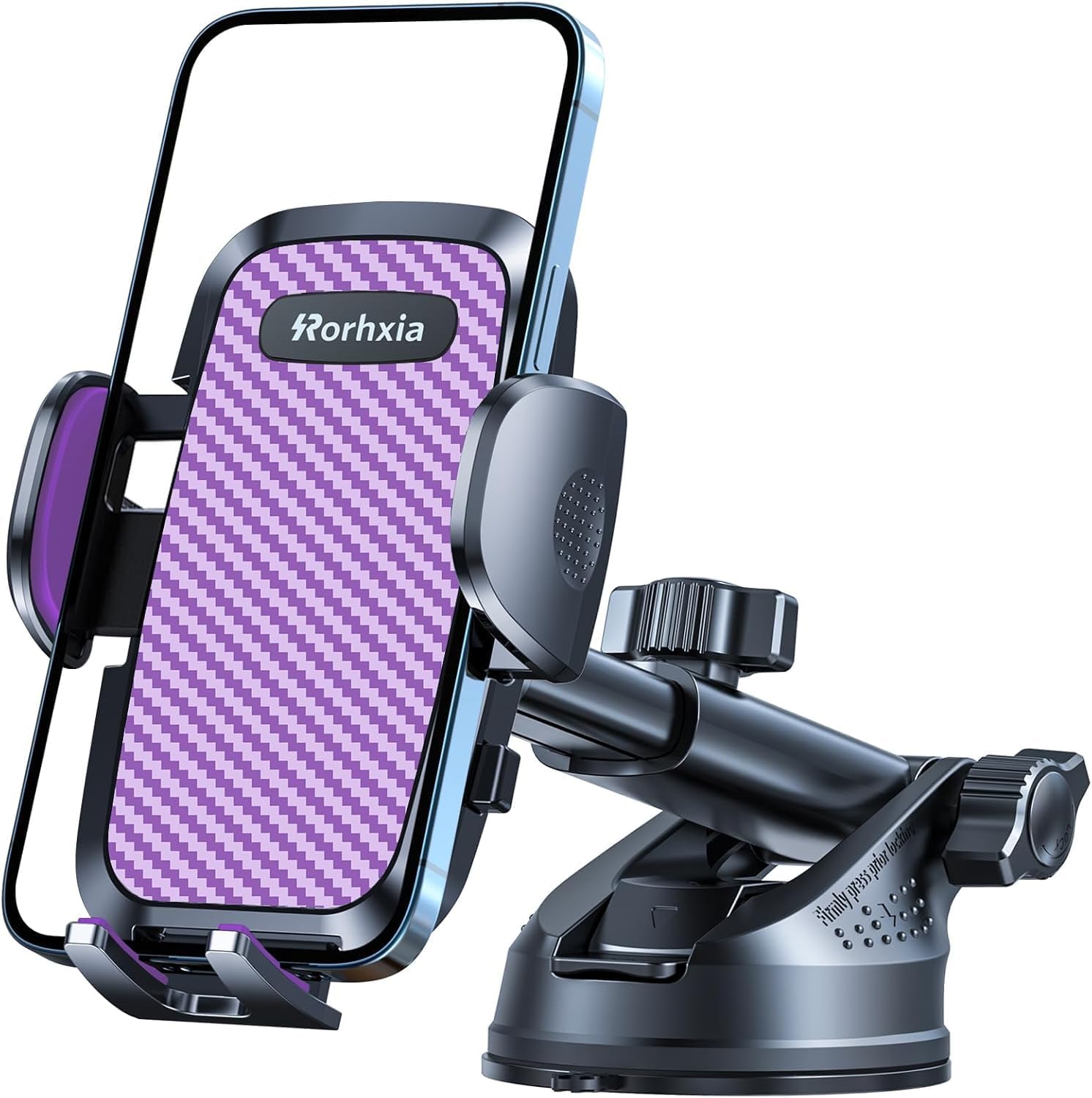 - [Rorhxia 3-IN-1 Car Phone Mount]: With the latest improved suction cup and vent clip [ stronger & tighter ], this cell phone holder can hold your phone firmly on dashboard windshield or air vent, even on the bumpiest road. Better yet, it comes with a 2-step locking system, which provides more reliable attachment to your car.