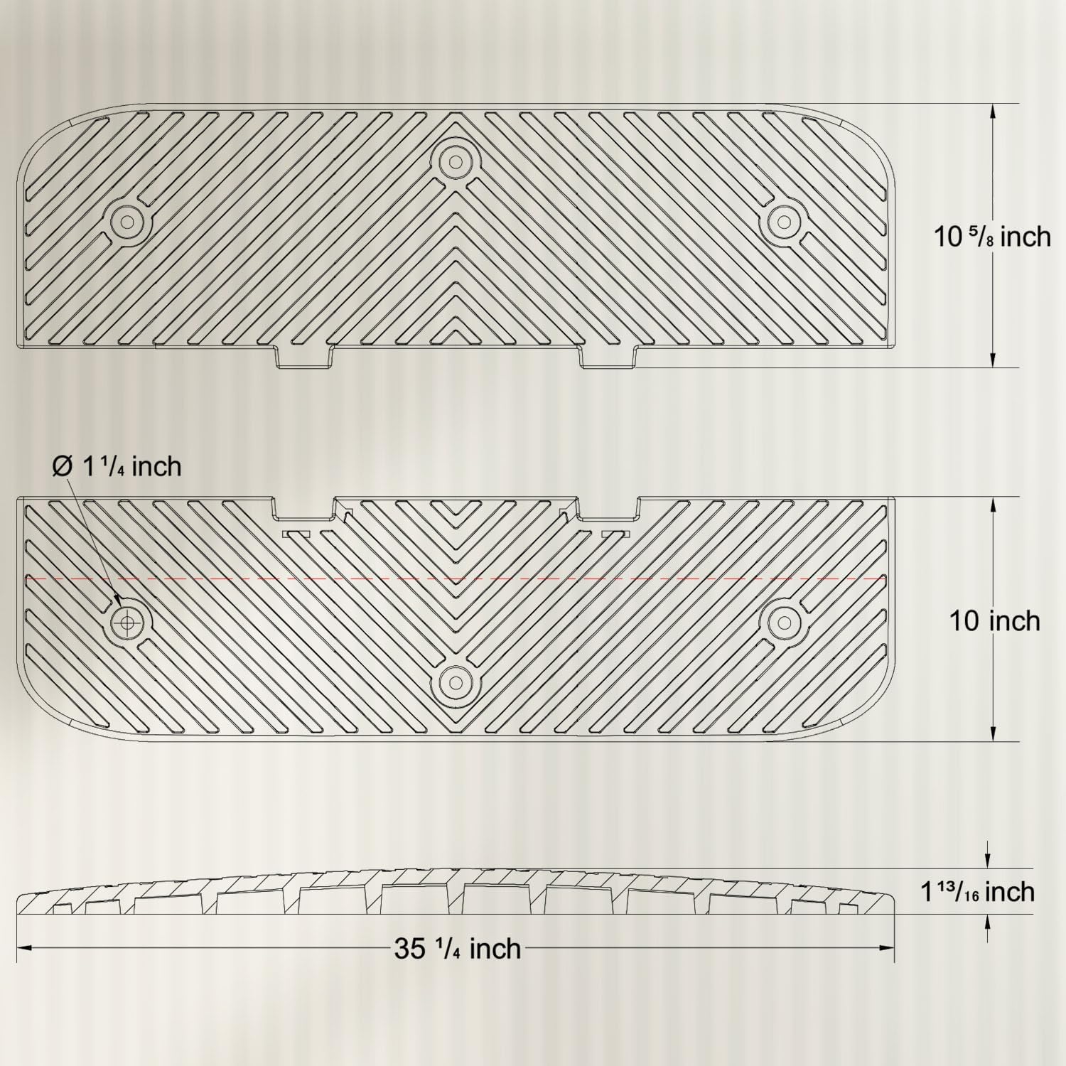 - Middle Sections --- 35" x 20" x 2" inch, the middle section that can be connected, the quantity used can be determined according to the width of the road, 4 middle sections can be connected to form a speed bump that is 80" long, 35" wide, 2" High.