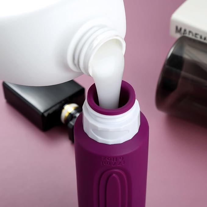 - Oversize 6oz travel bottle: Featuring a PVC toiletry bag, these travel-sized silicone bottles are perfect for storing and dispensing your favorite shampoos, lotions, and other liquids. Designed for convenience and durability, this travel set is a must-have for all your adventures.
