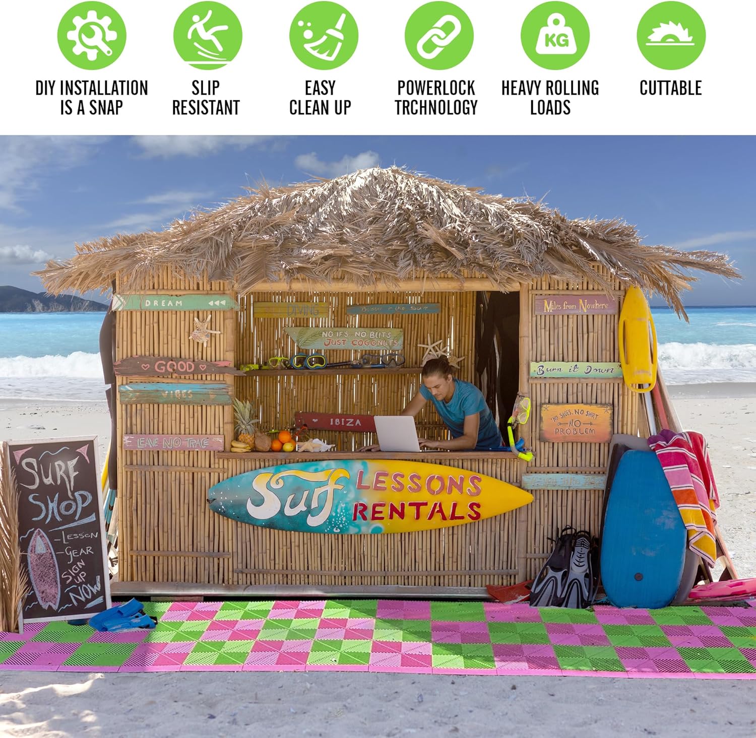 - SELF-DRAINING AND SLIP RESISTANT: The ingenious patented design creates maximum airflow and drainage for your floor. The multi-level understructure absorbs impact and offers great anti-fatigue benefits and is also slip resistant