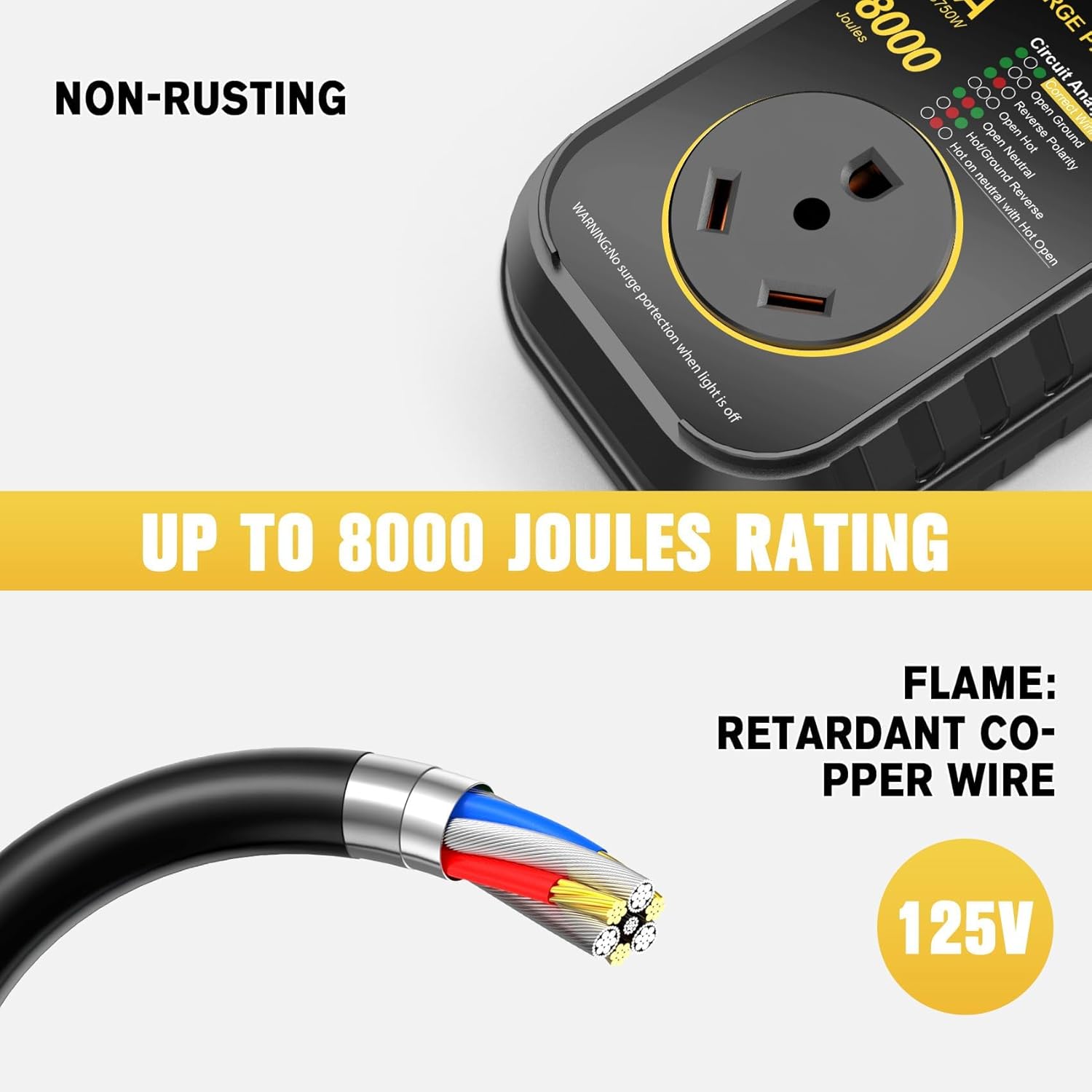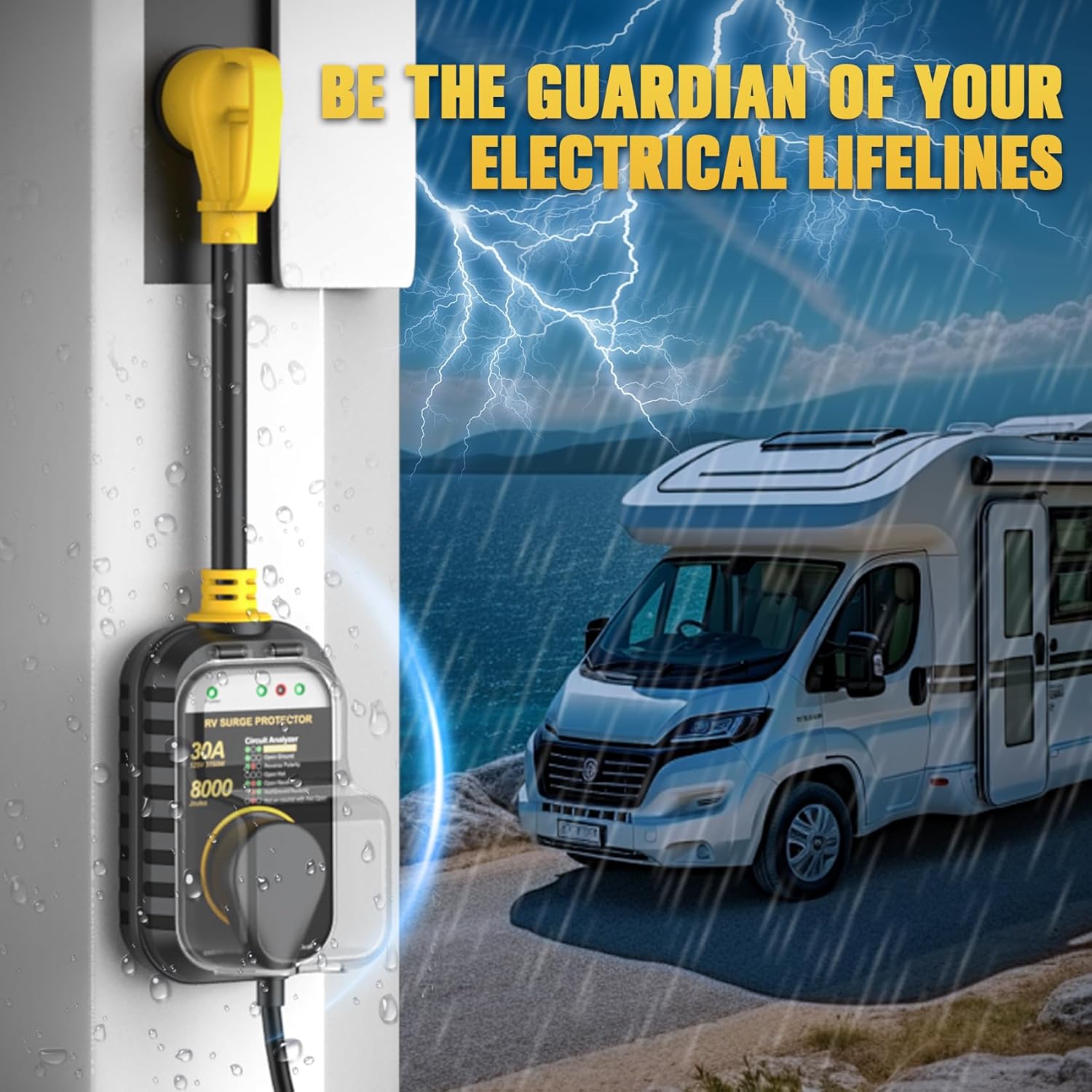- 【8000 Joules】GEARGO Upgraded RV Surge Protectors protects your RV by recognizing power failures and provides up to 8000 joules of surge protection. It protects your RV from high/low voltage and weather-related power surges.