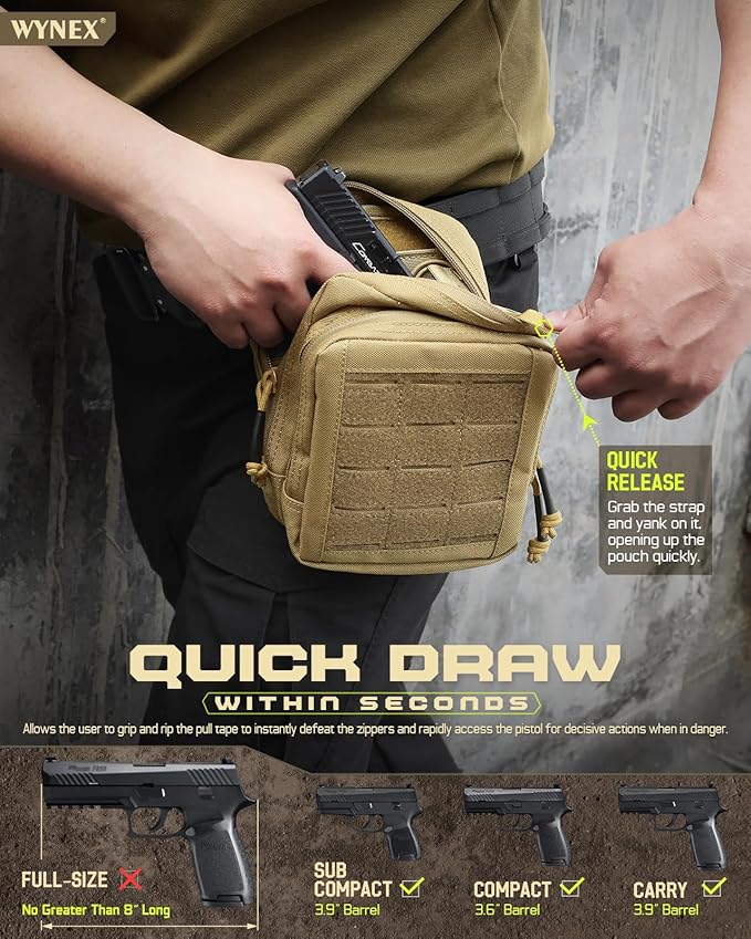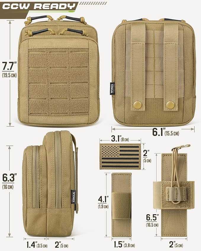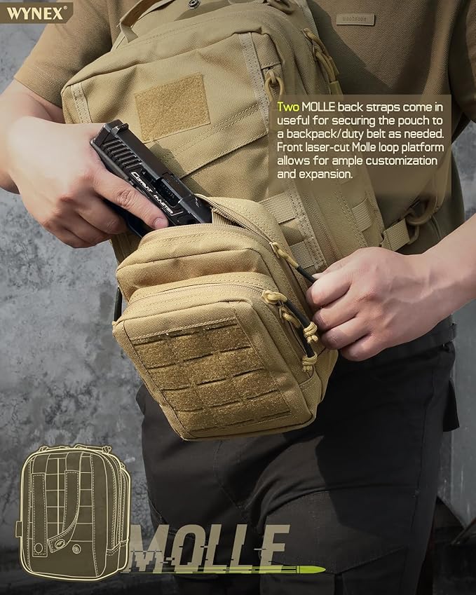 WYNEX Molle Admin Pistol Pouch for Concealed Carry, Tactical EDC Belt Pouch Gun Bag Utility Tool EMT Organizer Pouch Medical CCW with Universal Pistol/Elastic Holster