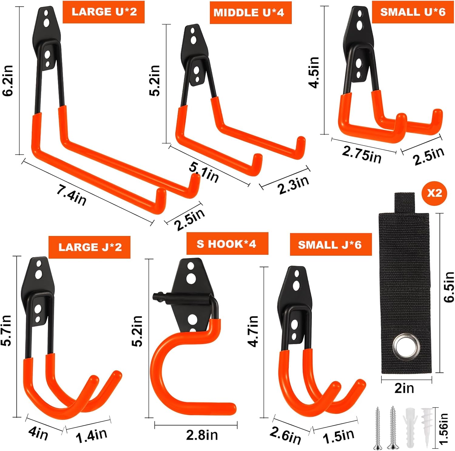Garage Hook Heavy Duty Wall Storage Hangers, 26 Pack Garage Storage Hooks Steel Tool Orange for Ladders, Ropes, Garden Tools