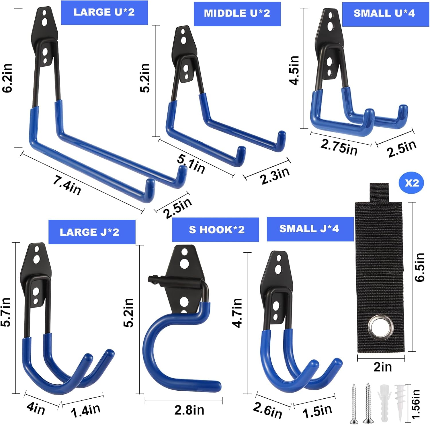 - PVC Rubber Coating & Anti-slip Design: Metal garage hooks with blue rubber-coated design efficiently holding tools against scratches and rust, also anti-slip design preventing tools slipping-off and flaking.