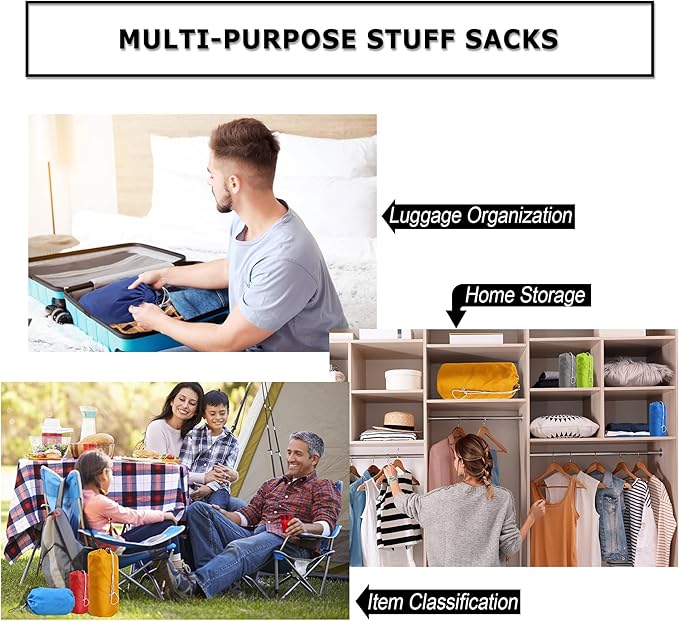 - Multi-Purpose & Multi-Ocassion: These lightweight stuff sacks are ideal for backpacking, camping, boating, hiking, swimming traveling and other outdoor activities. These stuff bags are best design for shoes, towels, clothes, , jacket, food and small pieces of camping gear.