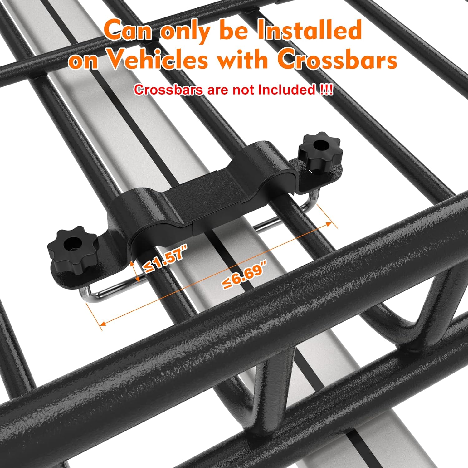 - Wide Compatibility: Compatible with many types of crossbars (crossbars are not included), but only suitable for vehicles with crossbars. Easy to be installed on the car roof with four universal U-bolts within minutes.