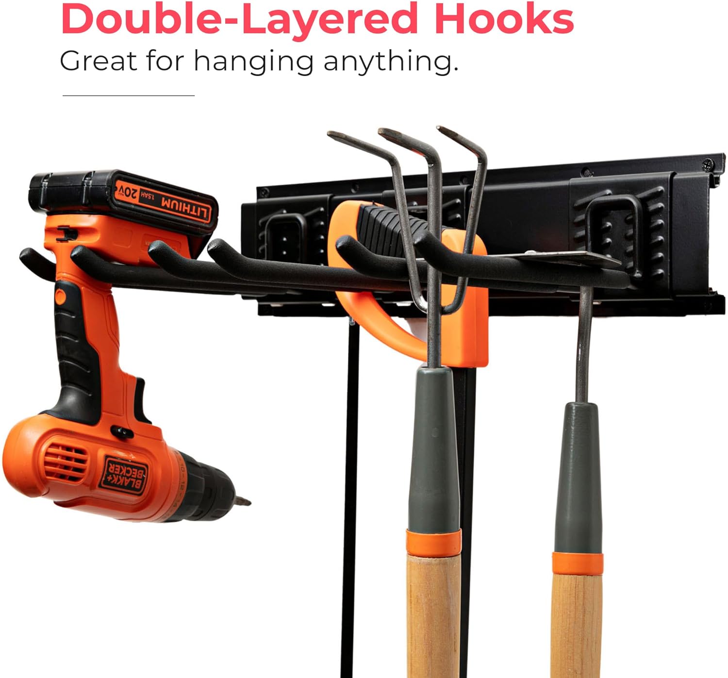 - EASY INSTALLATION: Transform your garage effortlessly with our user-friendly tool organizer. Featuring pre-drilled holes and included hardware, setup is a breeze. The adjustable hooks can be easily placed and repositioned by sliding them over the rack, making organization quick and stress-free.