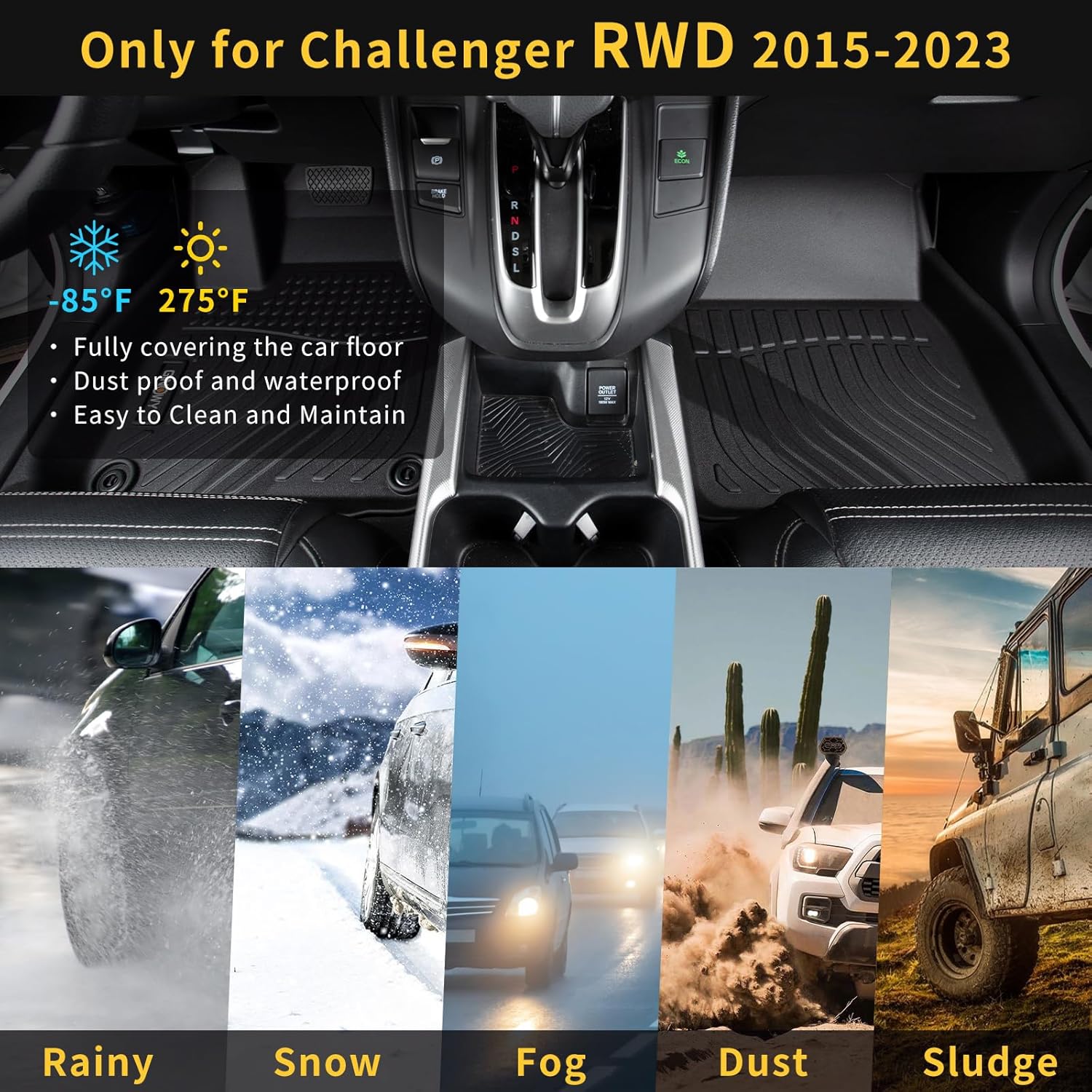 - 【All Weather/Season】 GINOWY's Challenger all weather car floor mats can be used in all seasons, especially in cold winters or hot summers. They will not deform or break and are extremely durable.