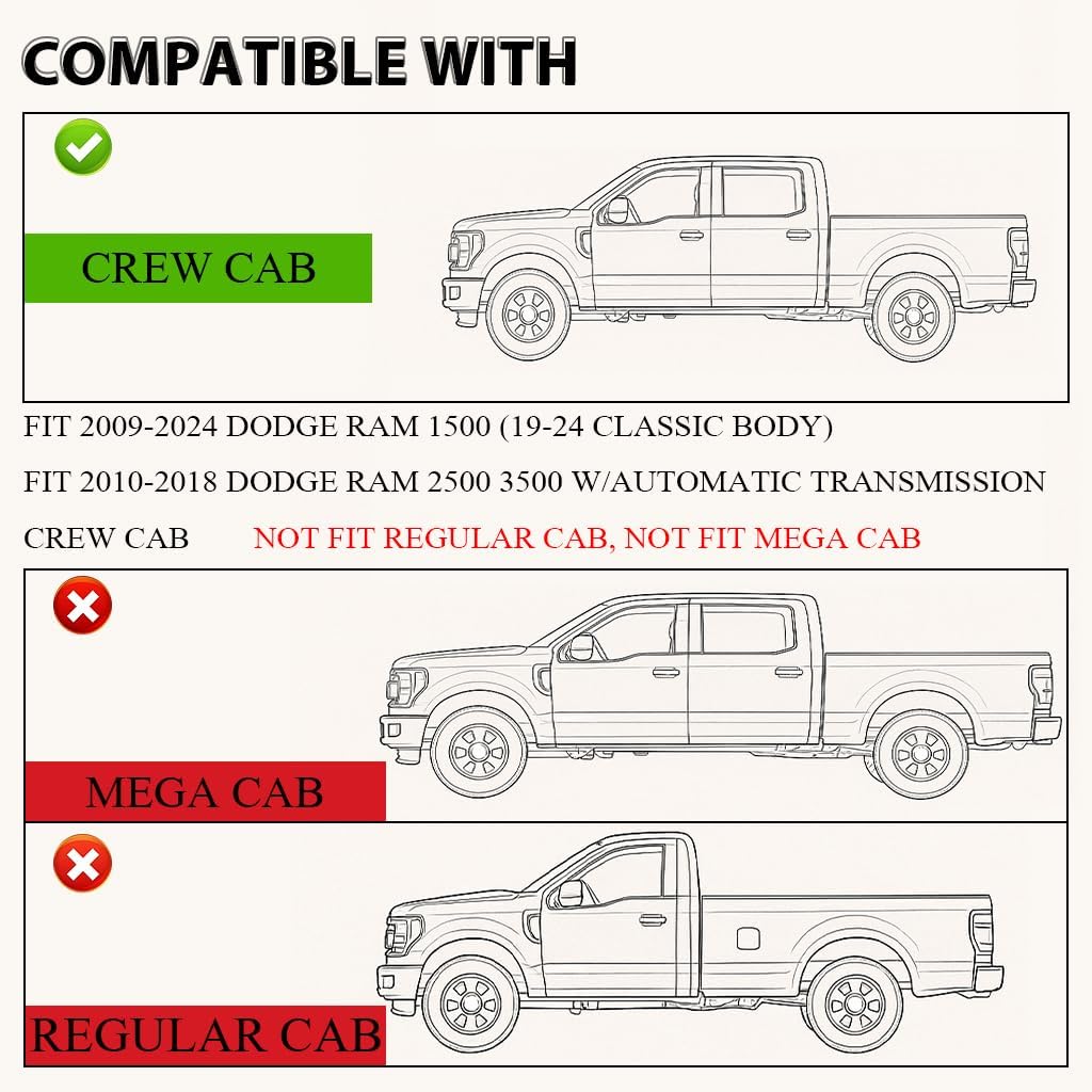 - : Vehicle Service Type Compatible with Dodge Ram 1500 2009-2024(19-24 Classic Body)/Fit 2010-2018 Dodge Ram 2500 3500 Crew Cab w/Auto Trans Compatible with Dodge Ram 1500 2009-2024(19-24 Classic Body)/Fit 2010-2018 Dodge Ram 2500 3500 Cr… See more