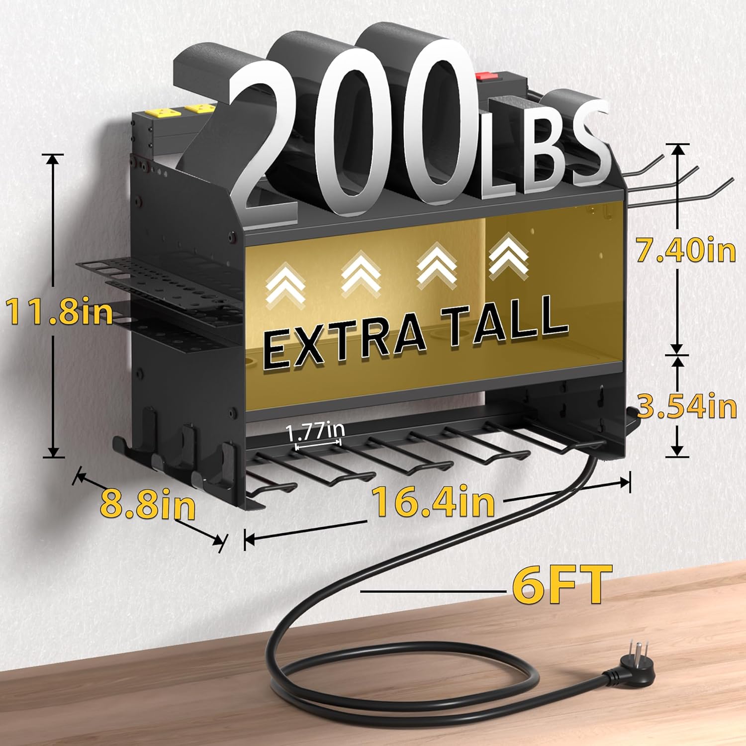 Heavy Duty Wall-Mounted Tool Organizer&Power Charging Station,Modular Garage Storage System with Cordless Drill Holder, Battery Racks,Shelves,Workshop Organizers with Electric Cord Management