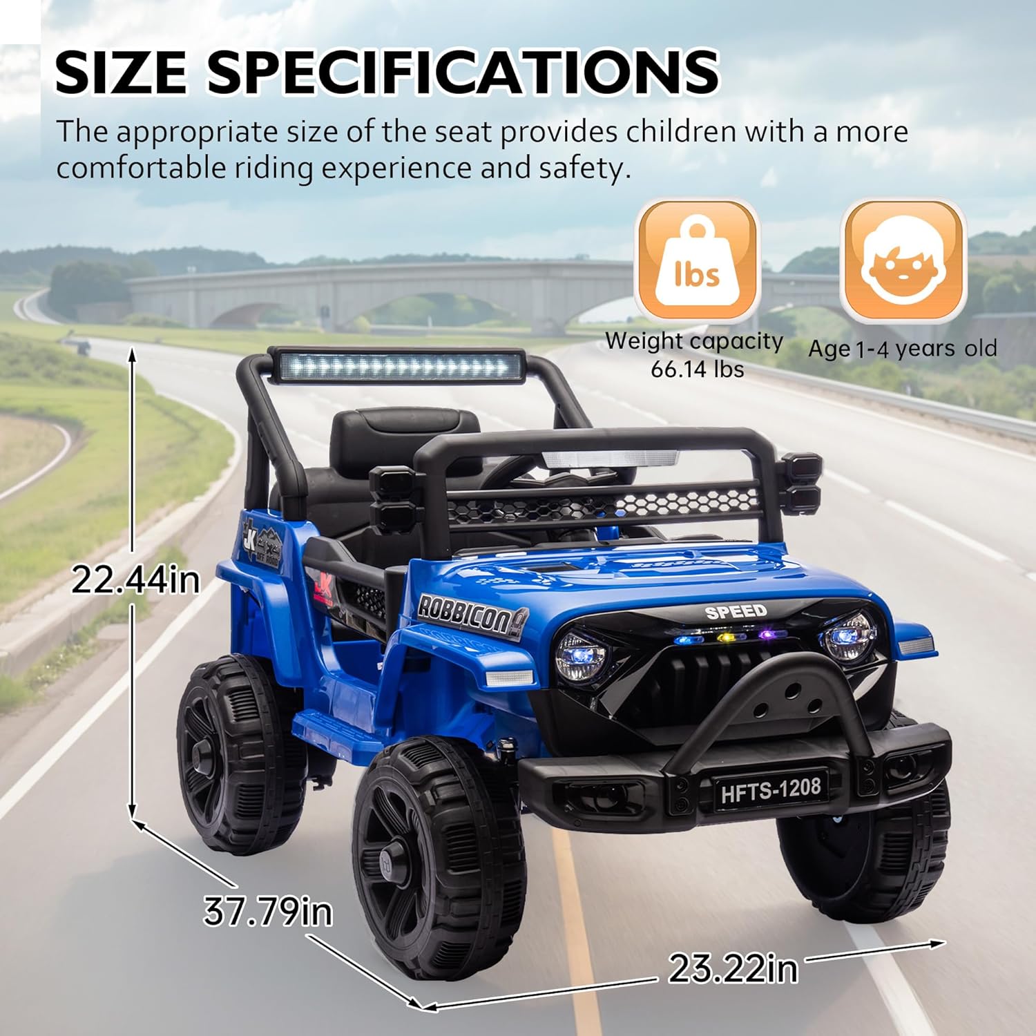 12V Ride on Electric Truck Car for Kids, 12V Kids Electric Vehicles w/Remote Control, Four-Wheel Suspension, USB, Bluetooth, Power Display, Lights, Battery Powered Ride on Toys for Boys Girls (Blue)