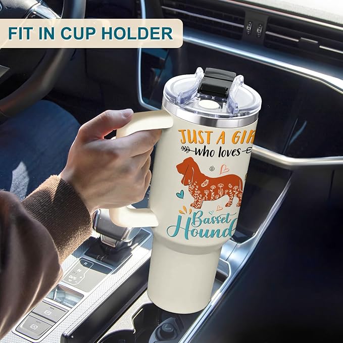Basset Hound Gifts for Girls & Women, Christmas and Mother's Day Gifts for Basset Hound Lovers, Birthday Present Idea for Dog Owners, Dog Mom 40oz Tumbler with Handle & Straw