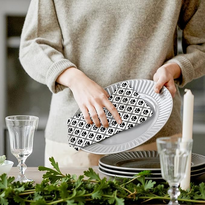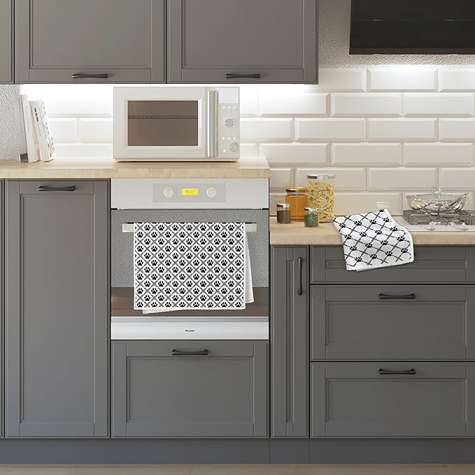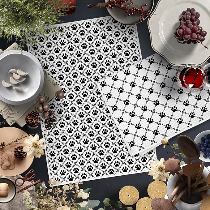Black and White Diamond Dog Paw Kitchen Towels, Dog Lover Mom Gifts Dish Tea Towels for Kitchen Decor, Puppy Pet Lover Gifts Hand Towels for Bathroom Decor, 16x24 Inch Set of 2