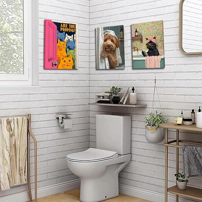 - Versatile Home Decor: Ideal for bathrooms, bedrooms, toilets, and kids' rooms, this humorous cat artwork adds a quirky touch to any wall. It’s the perfect decor for a fun and lively atmosphere in any space, from modern to playful.