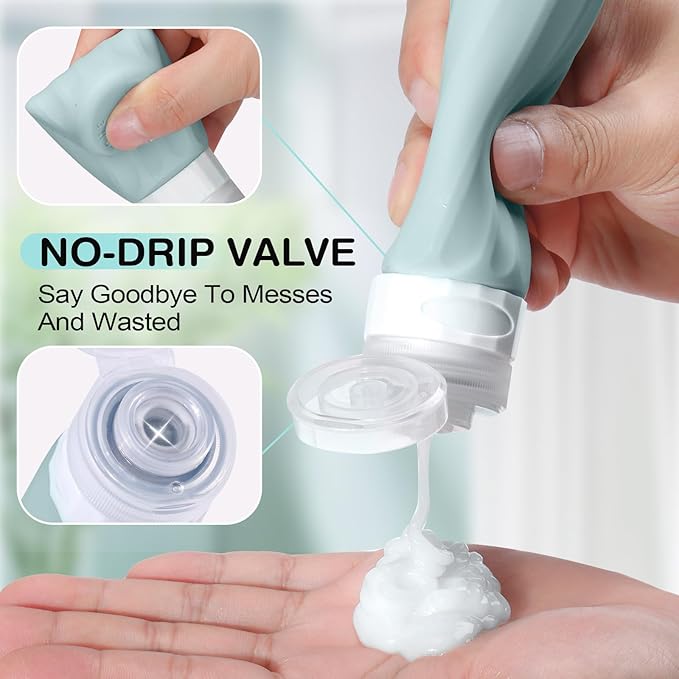 - 【LEAK-PROOF AND TRAVEL-FRIENDLY】Travel worry-free with our 14pack Travel Bottles for Toiletries. Not only are they designed with a no-drip valve and rounded sealing screw-on outer lid, but they also come with a premium zippered clear bag to ensure your liquids and essentials stay safe