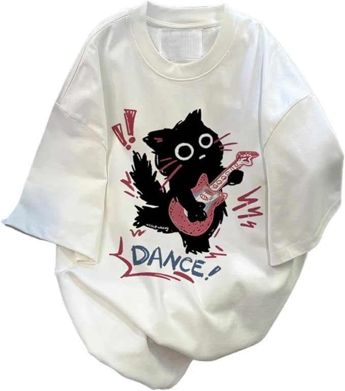Women Vintage T-Shirt Y2K Cat Graphic Harajuku Tee Tops Summer Emo Grunge Oversized Streetwear Preppy Gothtic Clothes
