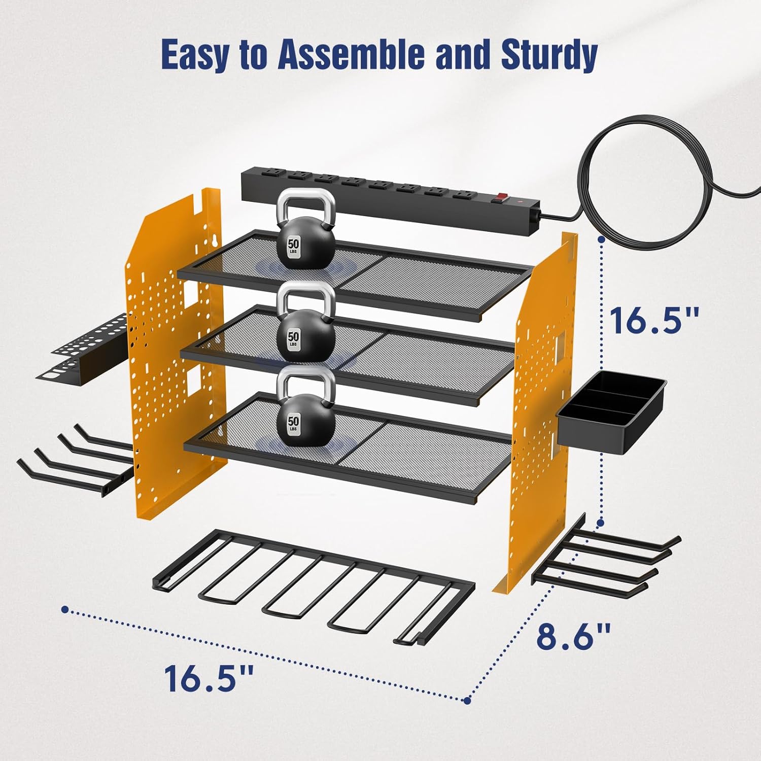 - 【Convenient Tools Charging Station】Very convenient for charging your tool batteries, All-in-one design, the metal power strip with 8 outlets and overload protection. If you have a lot of rechargeable tools, you can charge everything right in the rack and avoid searching for sockets. 5.9ft power cord included.