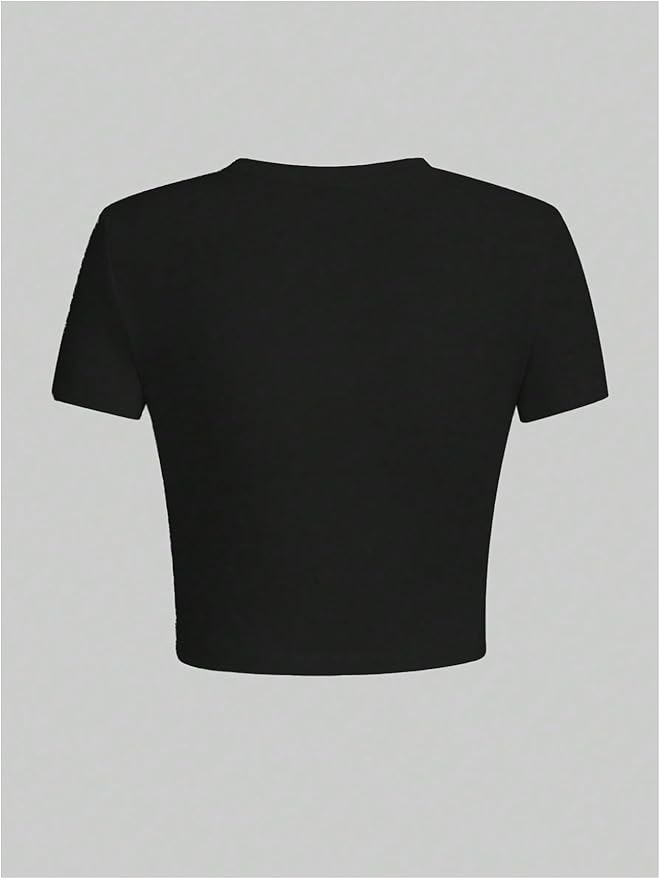 • Features: Letter print, animal graphic, round neck, short sleeve, slim fit, cropped tops, womens tops, fashionable